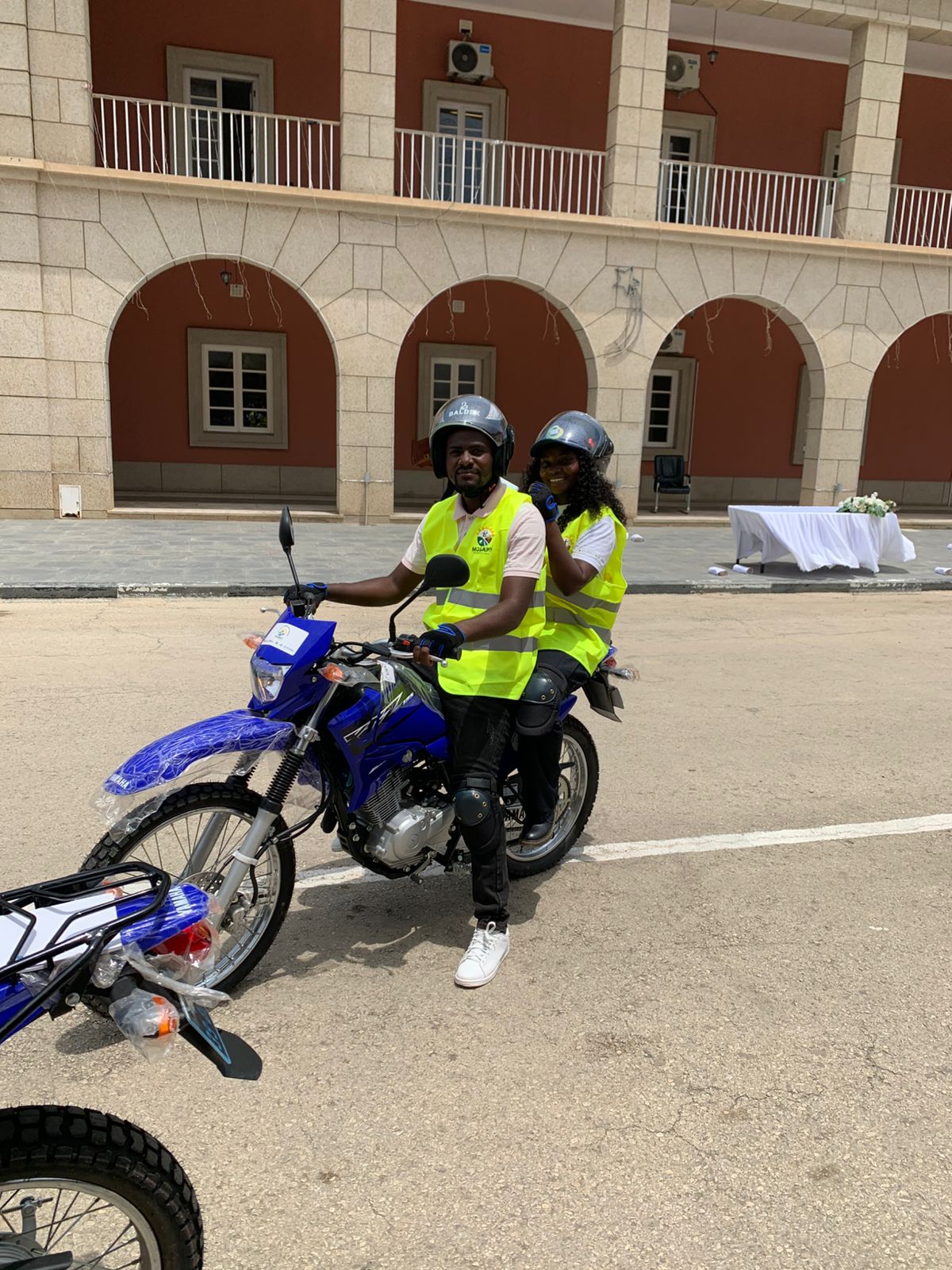 As motorizadas foram entregues com equipamentos de protecção essenciais, incluindo capacetes, luvas e joelheiras, garantindo maior segurança aos utilizadores no exercício das suas funções.