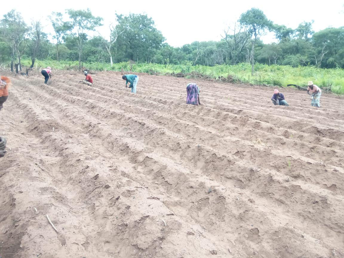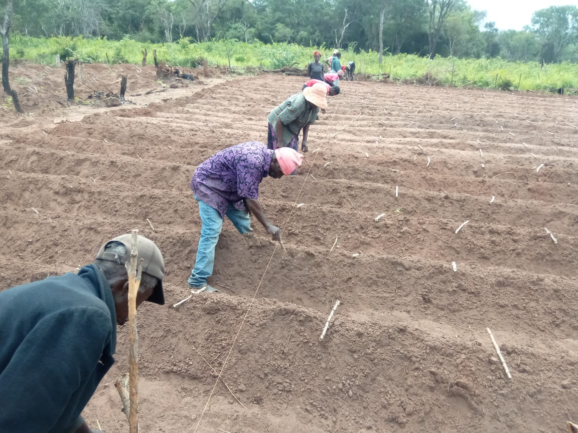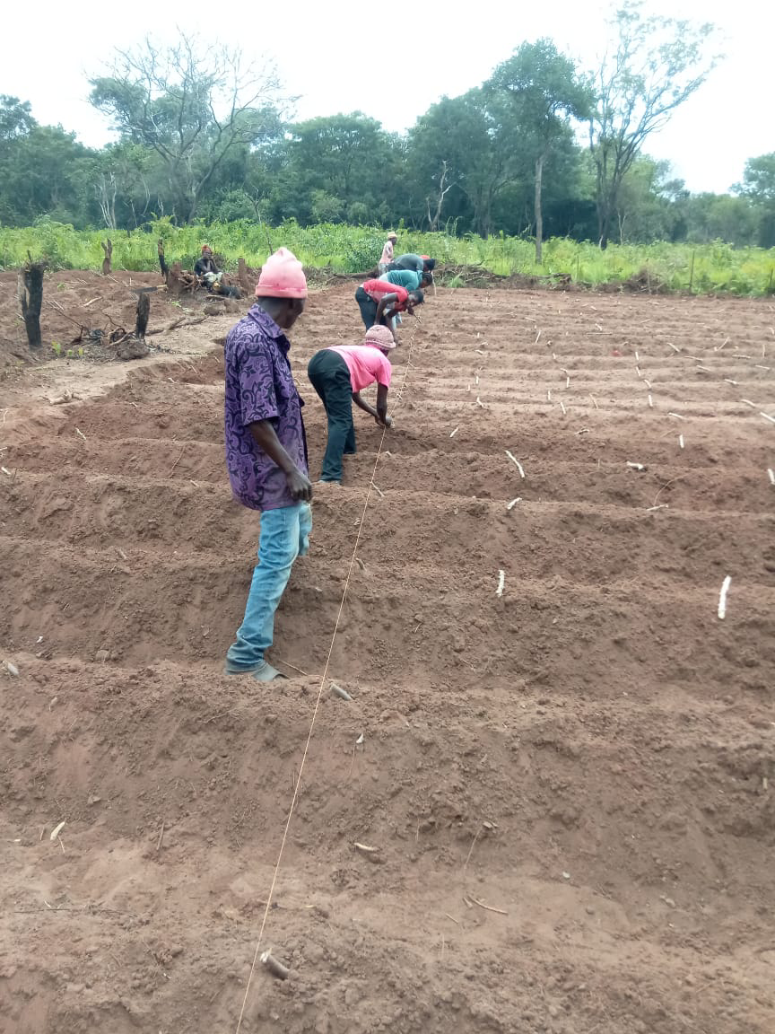 A actividade teve como foco a plantação e sementeira das culturas de mandioca e feijão, desenvolvidas numa área total de 1.352 m². O objectivo foi orientar os beneficiários quanto à utilização adequada dos recursos disponibilizados, assegurando maior eficiência produtiva, melhor planeamento das actividades agrícolas e sustentabilidade das iniciativas implementadas.